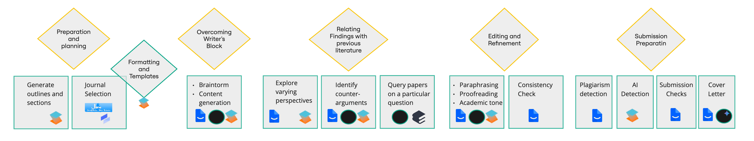 Traditional Approach: Writing a manuscript involves drafting, revising, editing and formatting the text. Researchers often struggle with writerās block, structuring their manuscripts and ensuring consistency.AI-Enhanced Workflow:
