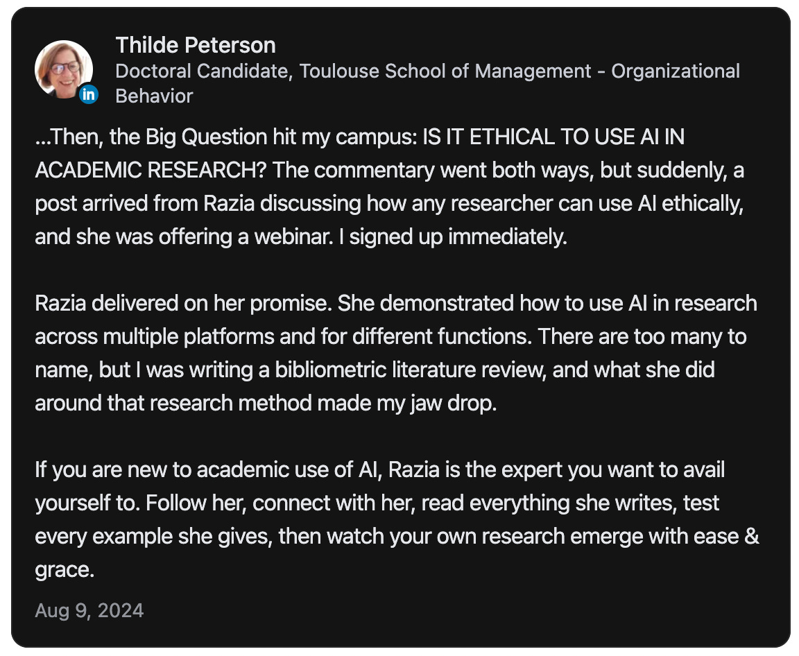 This is just the tip of the iceberg. AI provides invaluable support for researchers. However, the sheer number of tools can be extremely overwhelming. I can help you do MORE with LESS tools in this Masterclass. Get it now with 30% off with code XMAS30 at checkout (reminder: you can get 40% discount too)!